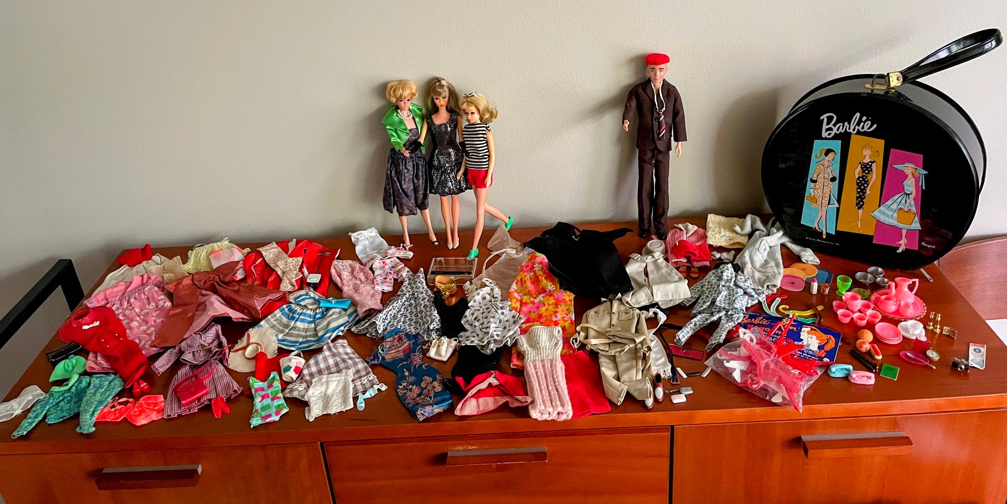My mother had an uneven and unpredictable relationship to “Americanization,” and I didn’t always receive the current trendy toys or clothes. After getting the “bubble hairdo” Barbie, I subsequently was gifted Ken and Skipper, another Barbie with long, straight hair, along with that original cardboard dream house (only four flat, cardboard pillows remain), and a reasonable selection of their clothes.