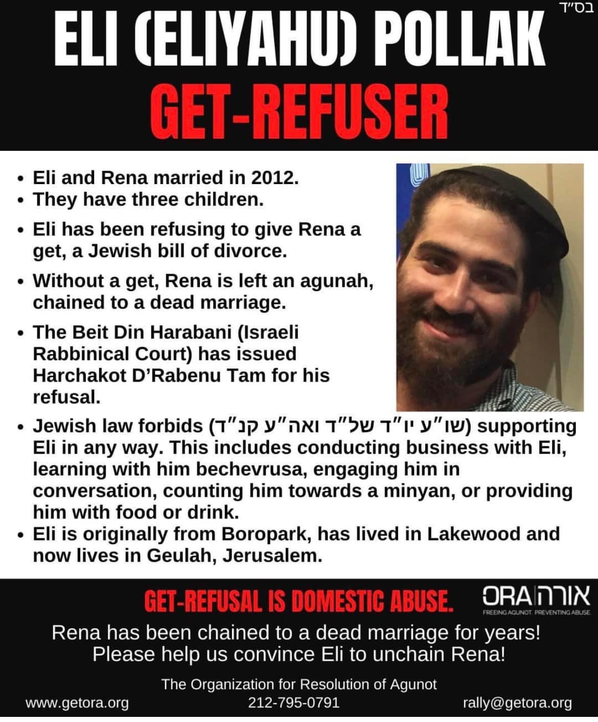Get refusal is abuse. Eli Pollack has stolen my freedom and I deserve it back.