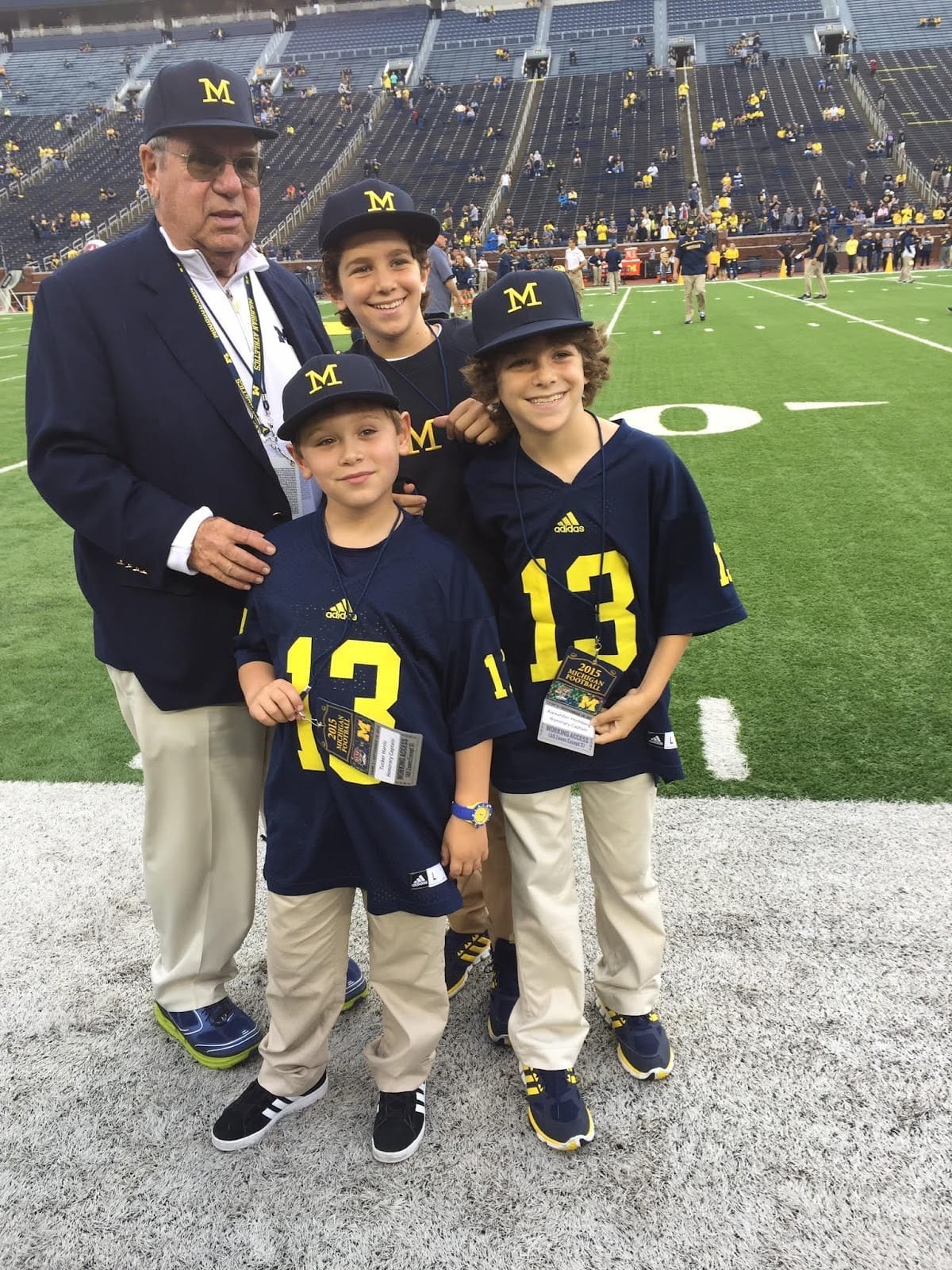 Harrison Hochberg with his cousin Tucker Harris (front) and brother Alexander (right) alongside their grandfather Ira.
