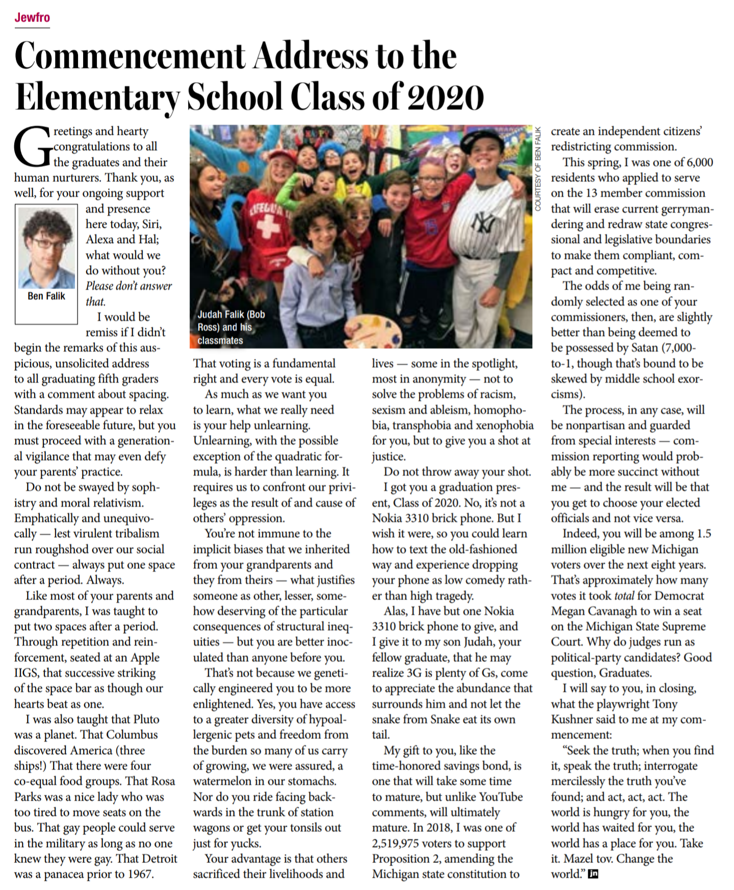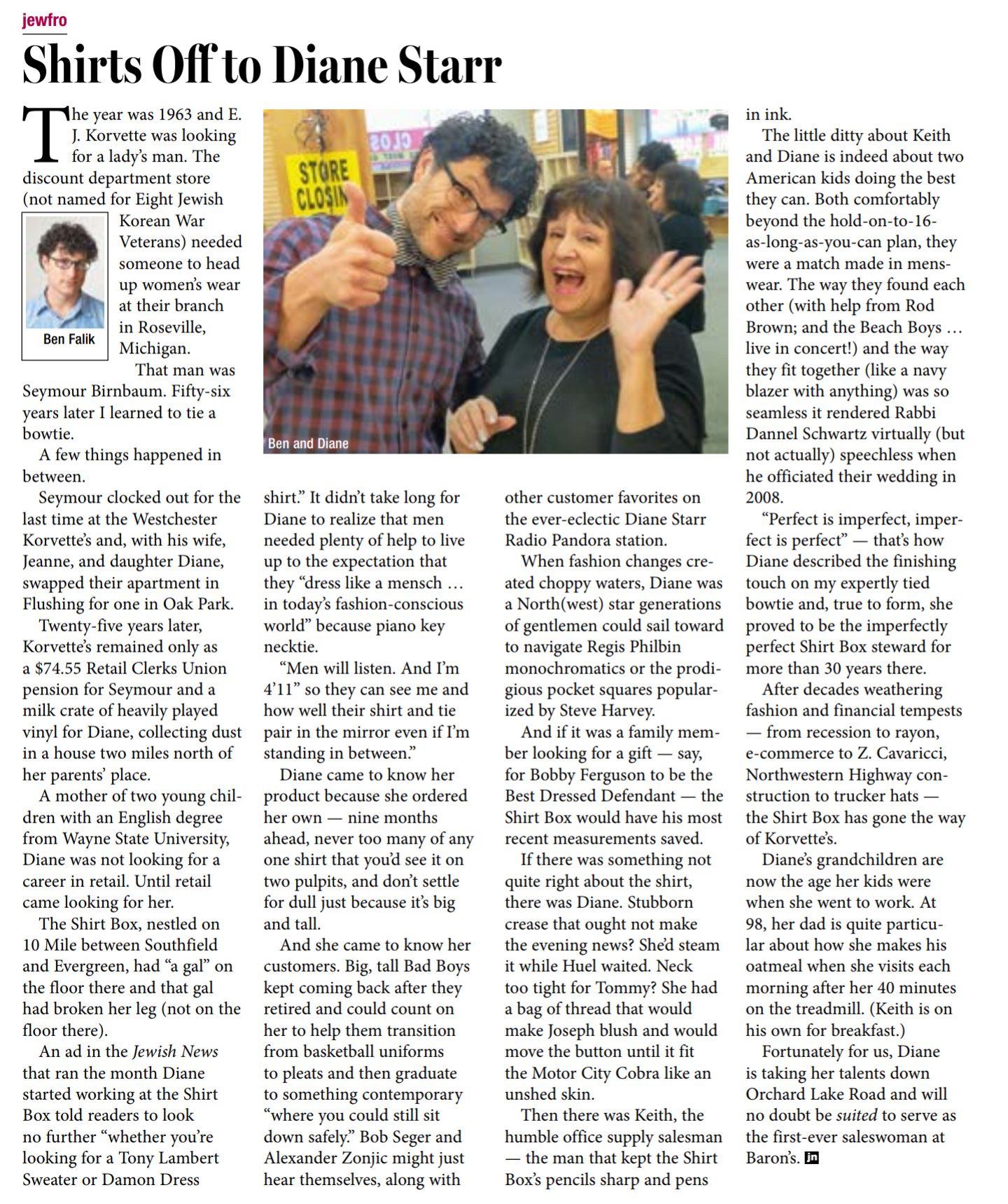 Congratulations to Nu?Detroit's own Ben Falik for his award from the Detroit Chapter of the Society of Professional Journalists for his Jewfro column.