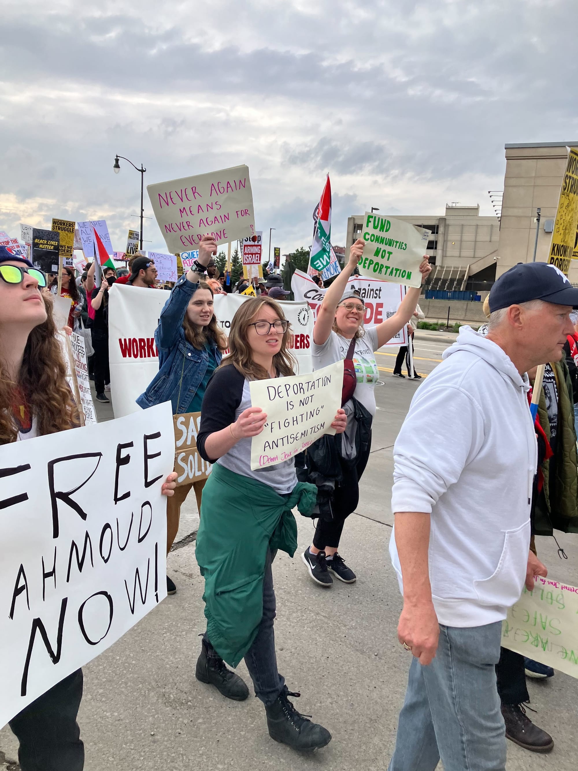 Over that cup of coffee, Stevie explained to me the goals of the Immigration team: organizing Metro Detroit Jews to gather together to defend Detroit’s local immigrant community in partnership with People’s Assembly, a local coalition of activists and organizers working to keep local immigrant communities safe. DJJ’s Immigration team works to advance PA’s organizing efforts.