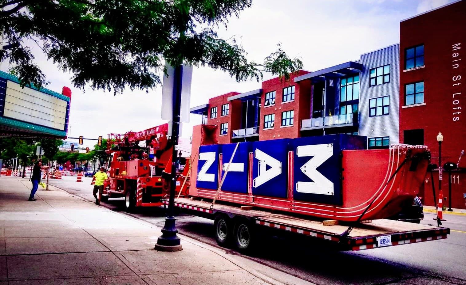 In spite of spirited efforts by Friends of the Main Art, the inconic theatre marquee came down this week to make way for the building's demolition.