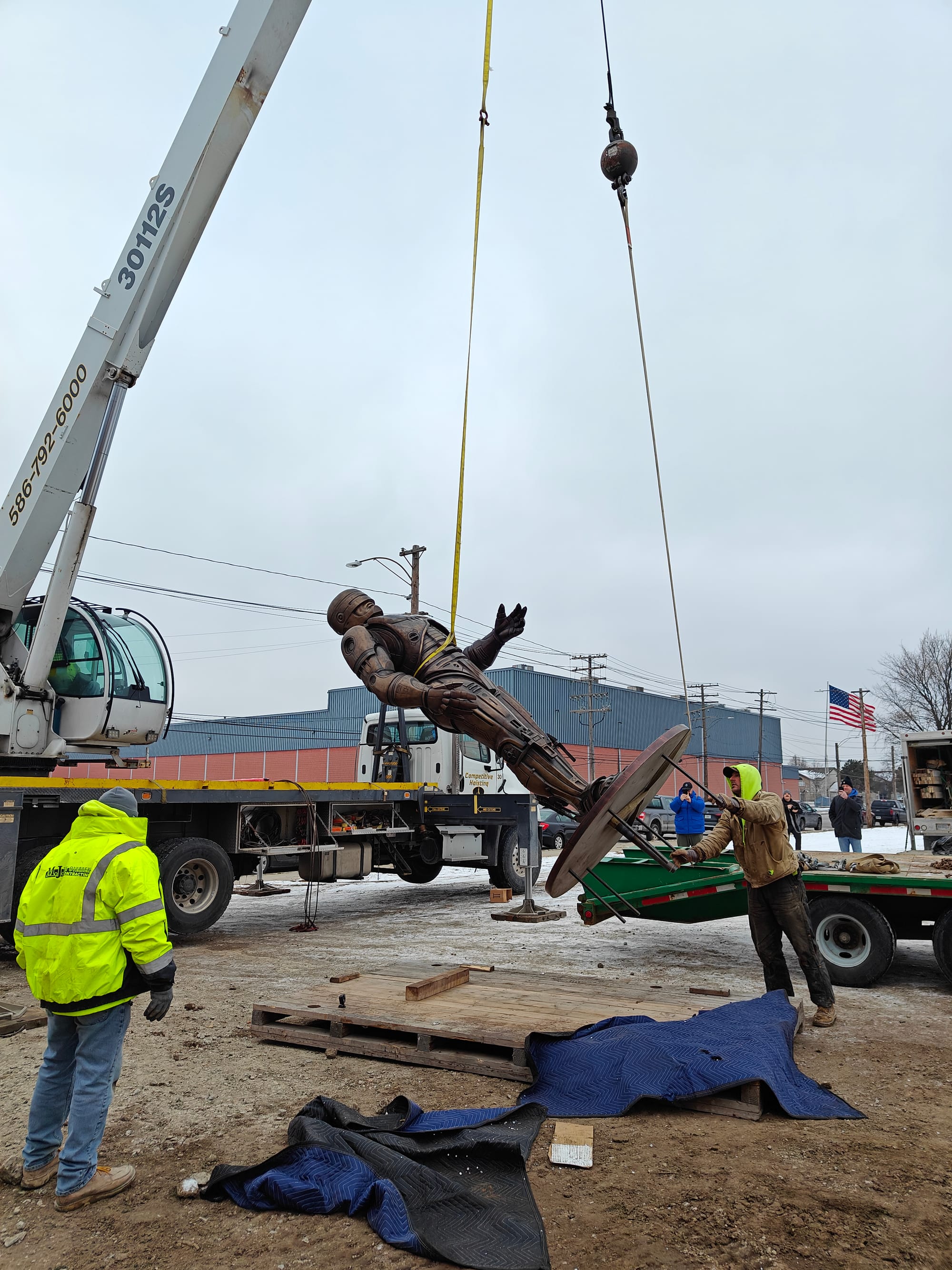 He made his was from his birthplace at Venus Bronze Works (since closed) on Mt. Elliot near Coleman A. Young Airport, to his equally un-glamorous temporary home: our garage at Eastern Market. Several reporters and others who had kept up with the story eventually caught on to this mysterious new location and the plans that were coming together to erect the statue. That is when the most interesting calls and emails began to come in.