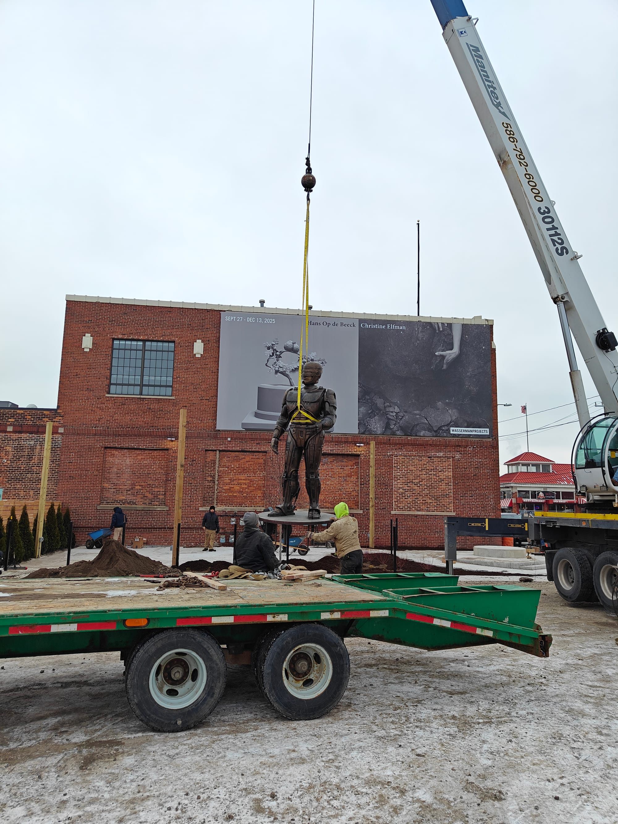 Richard, a “wood and metal worker artist type” from Toronto, was in Detroit for a few weeks overseeing the installation of decorative doors for the event space at what is now called The Department at Hudson’s Detroit. He had followed the story of the RoboCop statue from the start. When he heard about the statue being somewhere around Eastern Market, he decided to do some investigating, including inquiring with people at market businesses after he finished work each day.