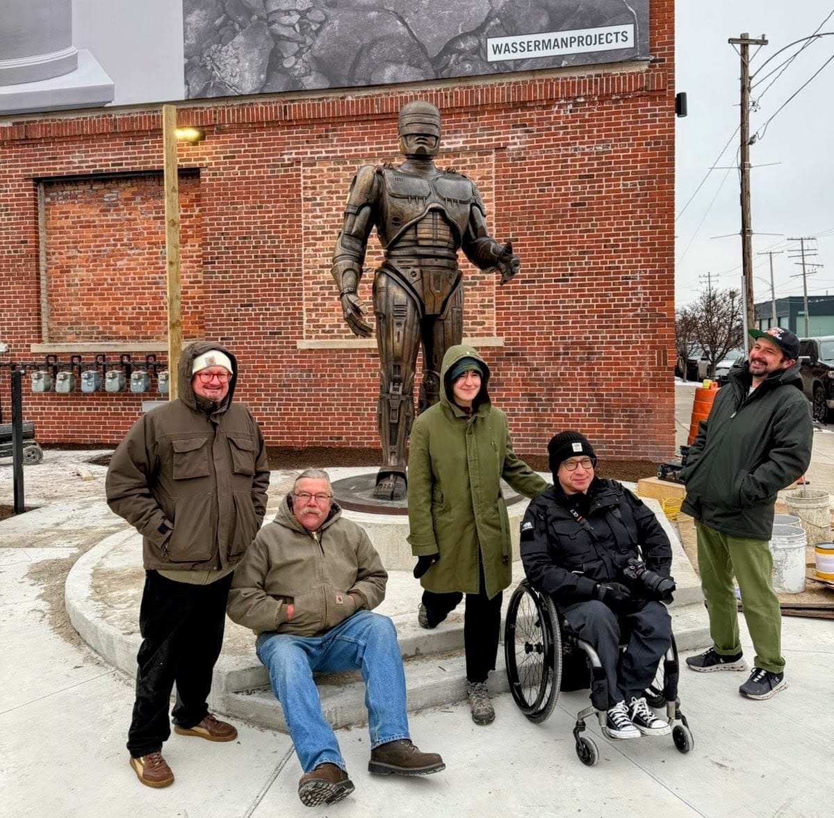 There were a lot of times during the five years that my colleagues and I were working on the RoboCop statue placement when we thought it might not ever happen, that ours might just be a few more names on the list of those who loved and supported this project but didn’t get to see it to completion. For just one example, we had initially sought to put him closer to the sheds, but during our engagement with RoboCop, the City went through a process that ultimately established a historic district on the market campus, making it next to impossible to place the statue there.