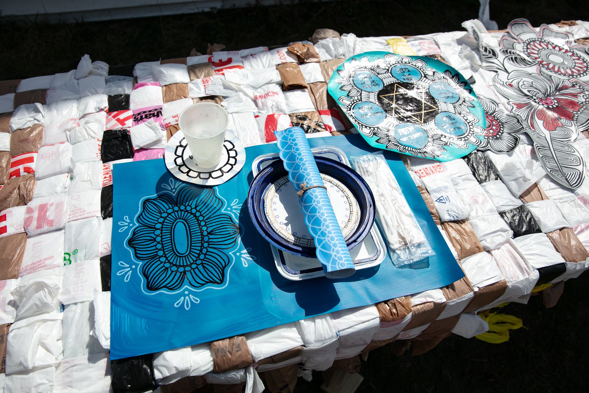 This Passover, inspired by Plastover, I have created an installation, At Our Table, which is a reimagining of a Passover table constructed from locally sourced, discarded single-use plastics. The piece, displayed during Passover at the Museum of Contemporary Art Detroit (MOCAD) March 25-April 4, will also include a collection space for the community to deposit single-use plastics thanks to Hazon.