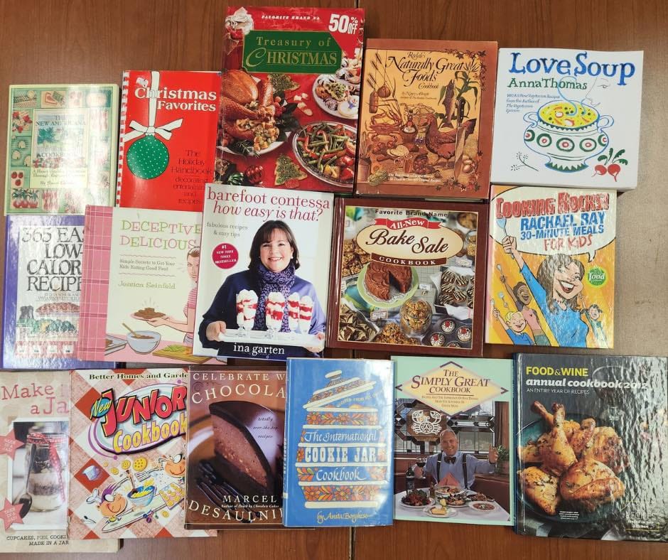 Cookbooks are another delight at Bookstock. We have plenty of copies of Julia Child’s Mastering the Art of French Cooking, though I’ve never turned up a coveted first edition. I love the well-tread copies of hers, Ina Garten’s and others — cracked spines, notes in the margins and sauce stains.