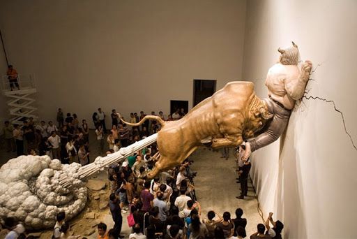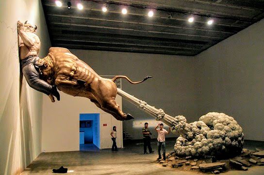The finest artistic treatment of Madoff is indisuputably Chen Wenling's sculpture "What You see Might Not Be Real" in which a Wall Street bull, propelled by its palpable flatulence gores Bernie against a Beijing gallery wall.
